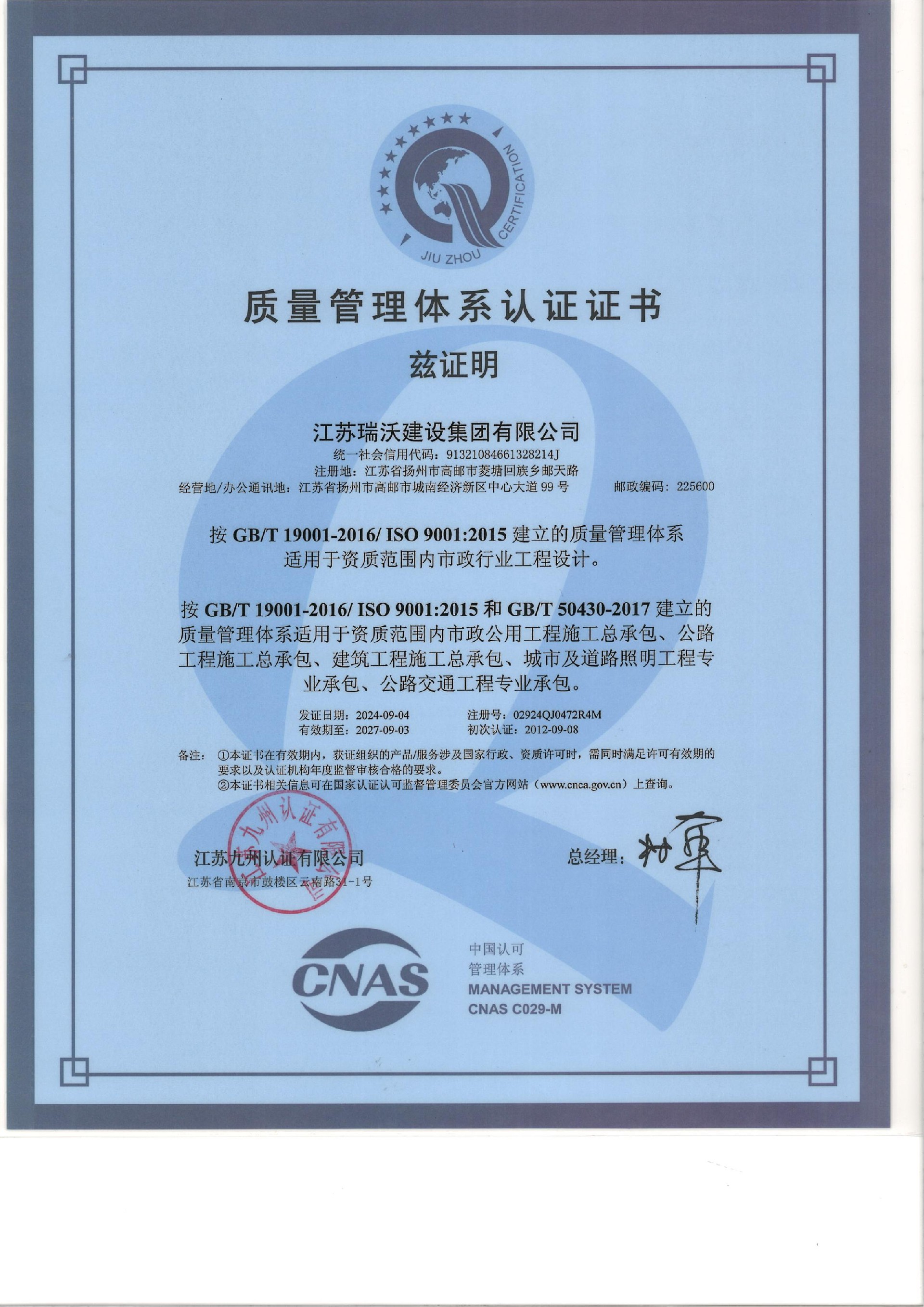 江蘇瑞沃建設(shè)集團(tuán)有限公司成立于2007年,是一家以市政、交通工程建設(shè)為主導(dǎo),集房屋建筑、交通安全設(shè)施、城市道路照明工程、電力工程、隧道工程、航道工程及投融資為一體的綜合性企業(yè)。企業(yè)注冊(cè)資本60000萬(wàn)元,現(xiàn)有各類技術(shù)人員580人,其中中、高級(jí)以上人員498人,注冊(cè)類人員268人,一、二級(jí)建造師166人。公司榮獲“江蘇省建筑業(yè)優(yōu)秀企業(yè)”、“江蘇省五一勞動(dòng)獎(jiǎng)狀”,連續(xù)多年被評(píng)為“揚(yáng)州市先進(jìn)企業(yè)”、“江蘇省建筑業(yè)百?gòu)?qiáng)企業(yè)”,連續(xù)八年蟬聯(lián)百?gòu)?qiáng)企業(yè)基礎(chǔ)設(shè)施類第一名。
